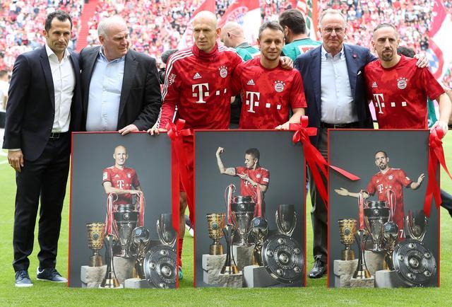 2019年5月18日,德甲第34轮,拜仁主场5-1法兰克福,实现联赛7连冠。36岁的里贝里与35岁的罗本替补出场双双破门,在安联球场完美谢幕。罗贝里两翼齐飞整整10年,在这一刻被时间按下了暂停键。